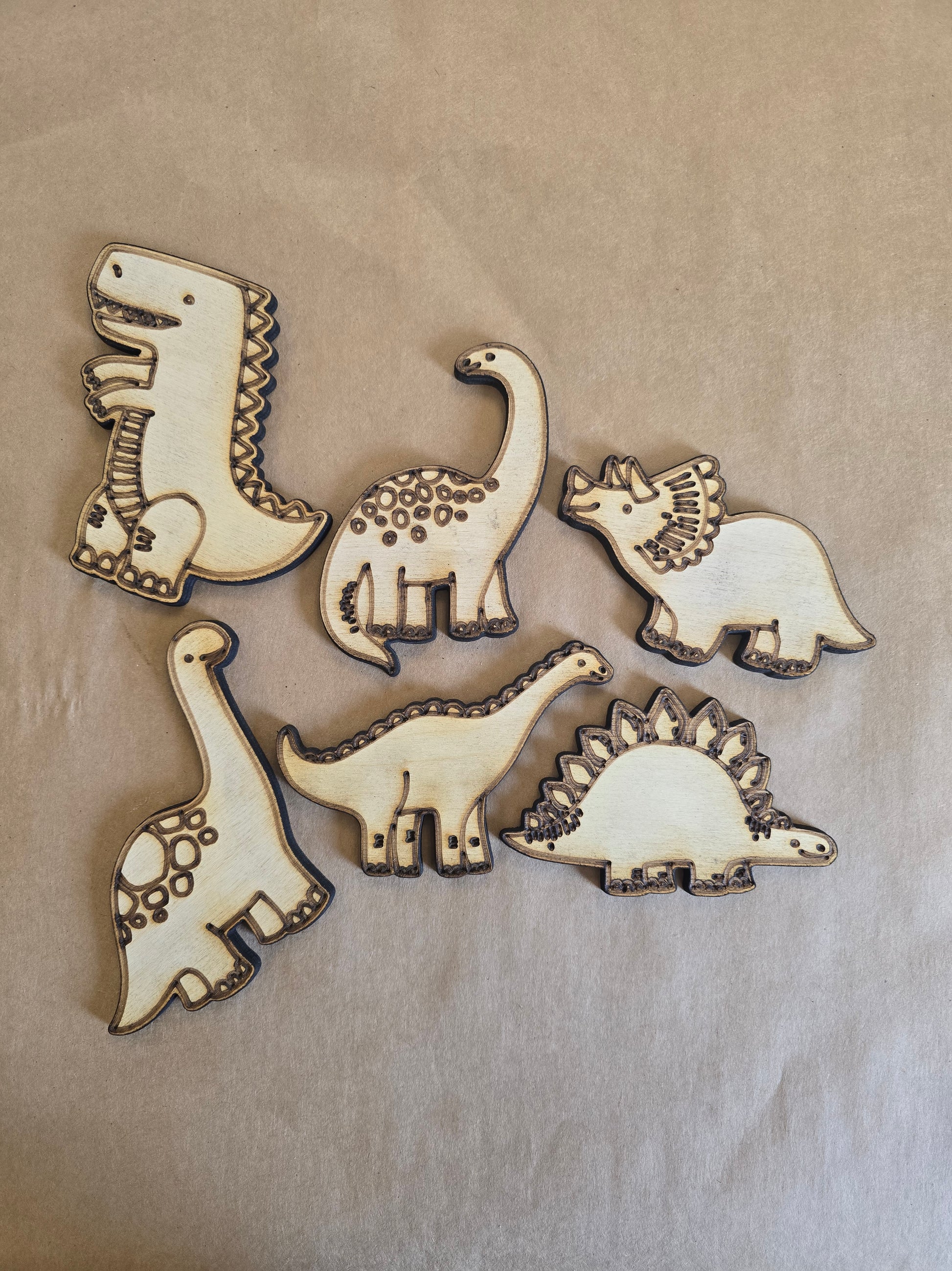Bring prehistoric fun to your crafting table with this 6-piece wooden dinosaur cutout set! Each dinosaur is laser-cut from unfinished wood, ready to paint, decorate, or display. Perfect for kids, classrooms, party activities, or dino-loving adults.